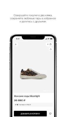 Скачайте приложение, чтобы первыми знать про новые поступления и щедрые предложения, получать премиальное обслуживание с персональным подходом и легко находить желанную новую пару обуви.
