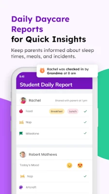 Parents can log in pickup and food requests for their children. Once the teacher completes the requests parents get a notification for it.