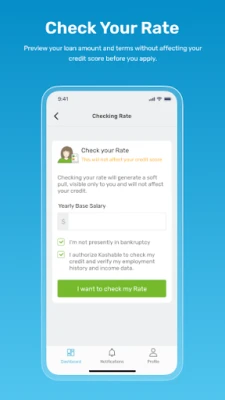 Borrow - Kashable low-cost loans can be used to pay down other debt, manage emergency expenses, make auto repairs, and more. Apply and get approved within minutes. Once approved, track the status of your loan any time in the app.