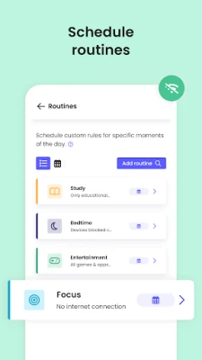 - Screen time limits: Automatically blocks the device after the set time has passed.