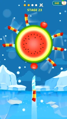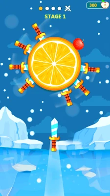 Throw the knife on rotating fruit without touching other knife, if you touch on the other knife level will be failed.