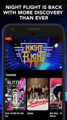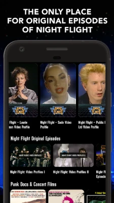 Night Flight is back! The original Night Flight was broadcast all night long on the USA Cable Network from 1981-1988 on Friday and Saturday nights. Passionately remembered by millions, VH1 recently called Night Flight one the "10 Greatest Hard Rock Shows of All Time" and the single greatest rock omnibus program ever aired. Get Back In The Daze with the revival of this beloved and influential show with full episodes from the original series that include rare interviews, experimental video and hours of artist profiles. With a Night Flight subscription, you also get access to thousands of classic stereo music videos from the 1980s and hundreds of hard to find full-length films from the cult, comedy, documentaries, horror and B movie genres.